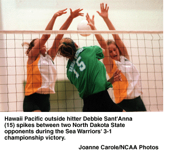 North Dakota State's 10-6 lead in game four evaporated as the Sea Warriors tied the score at 12. Debbie Sant'Anna had six of her match-high 28 kills in the final stretch and helped Hawaii Pacific to a 16-14 win to claim the championship.