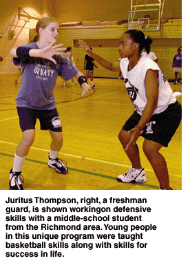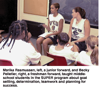 For 11 weeks, middle-school students from the Richmond area traveled to the university's campus for weekly two-hour sessions. The girls were divided into teams of about 10, and 14 women's basketball team members and two former players served as coaches and life skills teachers.