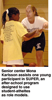 In a national pilot program sponsored by Converse, the student-athletes are teamed with more than 70 area middle-school students in SUPER (Sports United to Promote Education and Recreation), an after-school program designed to teach basketball fundamentals, goal-setting, team-building and determination.