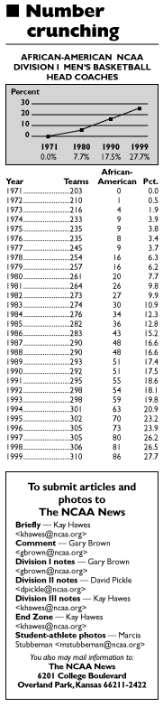 All football fans in the community -- adults, college students and children alike -- were invited to experience the events free of charge. Participants could try the Air Crisps Quarterback Accuracy Challenge, which tested participants' accuracy throwing a football; the GTE Head-to-Head Bungee Run, in which participants ran with an elastic restraint strap tied to their waist; or Sumo Football, which featured one-on-one "wrestling" in a sumo costume with the aim to score touchdowns on a reduced-size field. Other activities included the KFC, Pizza Hut, Taco Bell Obstacle Course, which was a challenge course that included blocking dummies, a ropes course and sprints; the Chevy Trucks Field Goal Challenge, which allowed participants to attempt field goals from different distances; and the NCAA Football Fastest Person, which featured a 40-yard dash. Also popular was the Compaq Technology Pavilion, where participants could see the latest in personal computer technology and play the EA Sports "NCAA Football '99" video game. The tour is one of many initiatives undertaken this year by NCAA Football, which is a coalition formed to preserve and promote the game of college football. Coalition members are: the NCAA, the American Football Coaches Association, the Collegiate Commissioners Association and the National Association of Collegiate Directors of Athletics. "College football carries with it such a strong tradition and following," said Michelle Grimes, vice-president for Host Communications, the marketing/management entity of NCAA Football. "Our NCAA Football Campus Tour is just one of the many initiatives we have in place to further promote college football among university students and the respective college communities." Other initiatives for 1998 include "The Slant," a weekly television show profiling captivating events and individuals in college football, the NCAA Football Radio Network and the "Take a Kid to the Game" program. The tour is managed and produced by the Dallas-based Streetball International, the sports marketing and event production arm of Universal Sports America. For more information about NCAA Football, see the Web site at www.ncaafootball.net. Hoops on ESPNViewership for men's basketball games on ESPN and ESPN2 was up 17 percent and 62 percent for men's games through December 1. ESPN has televised 23 games, averaging 889,000 households, according to Nielson Media Research data. This represents an increase of 17 percent compared to this point last season. Ratings for the telecasts also have risen 12 percent, from an average of 1.05 to 1.18. ESPN2 has televised 10 games, averaging 344,000 households, an increase of 62 percent compared to this point last season. ESPN is seen in more than 75 million homes, while ESPN2 is now seen in 61.2 million homes. Planning to play fairMore than 12,000 universities, colleges, high schools, middle schools and elementary schools in all 50 states and 101 countries will participate in the ninth annual National Sportsmanship Day "Dare to Play Fair" program March 2. The objective of National Sportsmanship Day (NSD) is to promote the critical role of ethics, honesty and fair play in athletics and society in general through student-athlete outreach programs, writing and art contests, coaches forums and other activities aimed at furthering the principles of sportsmanship and fair play. A joint emphasis in NSD '99 is the reduction of profanity. To that end, National Sportsmanship Day has formed the "No Swear Zone Club," asking coaches and players to pledge as a team that they will stop using profanity during their seasons. To register your institution for participation in National Sportsmanship Day, contact the NSD headquarters at 800/447-9889, or see the NSD Web site at www.internationalsport.com.