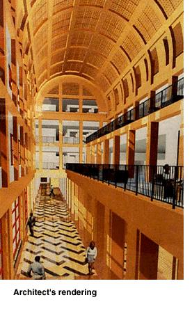 "The word 'impressive' keeps coming to mind," said Frank Marshall, NCAA 2000 project manager. "The features of the building are taking shape. The main reception area/atrium is coming together nicely, as well as the auditorium, with the sloped floor, stage area and control room all readily identifiable.