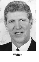 Now a television sports announcer, Walton received an Emmy for his work on an environmental documentary in 1979 and was nominated for two others for television broadcasting in 1995 and 1996.