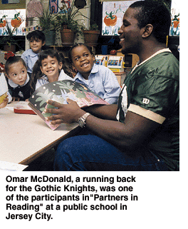 Next, the players began participating in a community outreach program at the Alexander D. Sullivan School, a public elementary school in Jersey City. There, through "Partners in Reading," the Gothic Knights made more new little friends and emphasized the importance of reading.