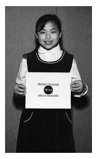 Ten-year-old Mai Xiong (left), an NYSP participant from California State University, Fresno, was the winner of the T-shirt design competition held last summer at all NYSP venues. Her design was featured on 1999 NYSP promotional materials and T-shirts nationwide. The Fresno State community raised funds to allow Xiong's family to travel to Orlando, Florida, for the presentation.