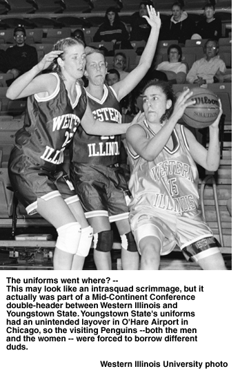 A different kind of streakThe Eastern Illinois University women's volleyball team has a winning streak that doesn't show up in the records books. The Panthers have maintained a minimum 3.000 grade-point average for 25 straight semesters. The streak began after the fall semester 1986 and has continued through the fall semester 1998. During the streak, 32 student-athletes from the volleyball team have finished with a perfect 4.000, and 13 of head coach Betty Ralston's players have gone on to earn a post-graduate degree. Also, she has coached three GTE Academic All-Americans: Vanessa Wells in 1996, Donna Sicher in 1989 and Laura Bruce in 1986. The team had a good year on the court as well, finishing 24-7 overall and 17-1 in the Ohio Valley Conference, winning its first regular-season OVC title. -- Compiled by Kay Hawes