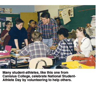 A series of round-table discussions between student-athletes from East Stroudsburg and student-athletes from four high schools highlighted the National Student-Athlete Day program last year at East Stroudsburg.