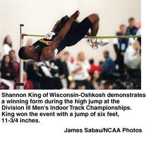 Wisconsin-Oshkosh's second-place performance was sparked by Shannon King, who won the high and triple jumps and soared to second place in the long jump.