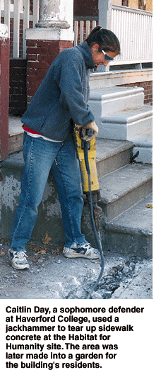 The Haverford women's soccer team has continued that tradition with a community-service project that involved more elbow grease than public relations skills. On a cold Saturday in November, the student-athletes traded their soccer cleats for hammers and drills, helping to renovate a building with the Habitat for Humanity organization.