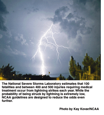 Lightning is the most consistent and significant weather hazard that may affect intercollegiate athletics, and until last year, there were not any NCAA guidelines to follow in situations where lightning was a threat.