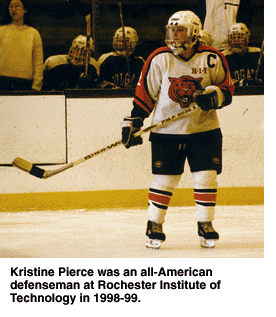 There are those who are overwhelmed by life's challenges and those who rise to meet them. Kristine Pierce, a senior hockey player at Rochester Institute of Technology, has used the hard times in her life to rise to the challenge, rededicating herself to what she says really matters -- helping others.