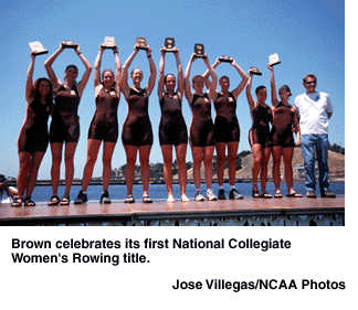 Brown captured its first National Collegiate Women's Rowing Championship by edging out Virginia in the final race of the championship May 30 at Lake Natoma in Rancho Cordova, California.