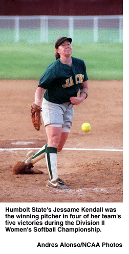 Kendall and Humboldt State opened the championship game against Nebraska-Kearney, a team they had beaten the day before, with a run in the first inning. The Lopers answered, though, with a two-run home run by Holly Waller.