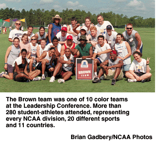 Together, they sat in a circle with the other 24 student-athletes in their group -- their new "color team," Brown -- in the huge conference room at Disney World's Coronado Springs Resort, waiting for the 1999 NCAA Foundation Leadership Conference to begin.