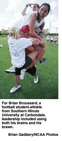 After a motivational speech by the Rev. Jesse Jackson (see pages 18 and 21), the student-athletes went into breakout rooms with their color teams. Before launching into a look at the academics of leadership, the Brown group paused to digest some of Jackson's most pertinent remarks about leadership and academics.