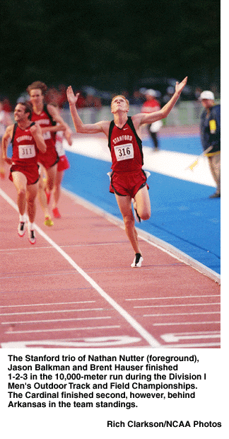 10,000-meter run: 1. Nathan Nutter, Stanford, 29:11.96; 2. Jason Balkman, Stanford, 29:12.91; 3. Brent Hauser, Stanford, 29:14.07; 4. Nolan Swanson, Wake Forest, 29:21.16; 5. Jim Jurcevich, Michigan St., 29:25.14; 6. Abdi Abdirahman, Arizona, 29:34.03; 7. Ryan Shay, Notre Dame, 29:55.78; 8. Chris Bailey, Illinois St., 30:00.17.