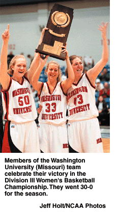And at Washington (Missouri), the Bears, who are used to perfection in women's volleyball, did so on the basketball court this year, mowing down 30 consecutive opponents on their way to their second straight Division III women's crown.