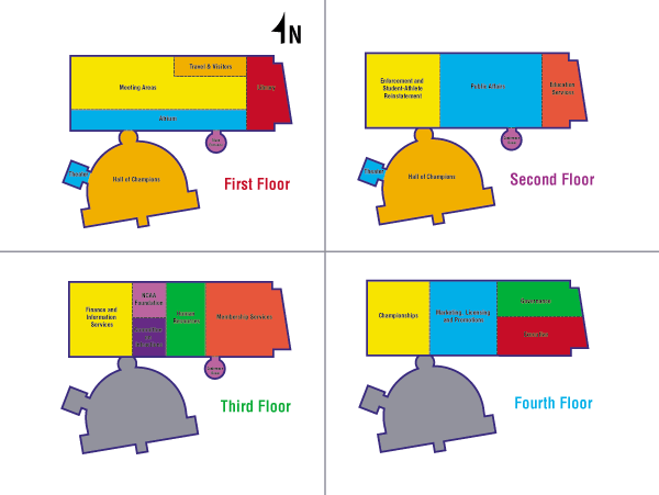 Will house the championships group; the marketing, licensing and promotions group; the governance staff; the NCAA Foundation staff; the general counsel staff; and the president and senior vice-presidents.