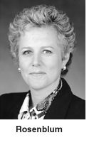 The senior vice-president for government affairs and education for Cablevision Systems Corporation is former commissioner and deputy chairman of the New York State Public Service Commission. She also has served as chair of the communications committee of the National Association of Regulatory Utility Commissioners and led the state of New York's efforts on the telecommunications act in 1996. Rosenblum has been an advisor for telecommunications policy in the Czech Republic and Poland as part of the state department delegation and was a contributor to the National Governor's Association Report on Telecommunications in 1994.