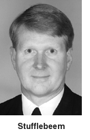 He has served as Commander, Carrier Air Wing 1, with combat operations in Bosnia and Iraq, and was Deputy Executive Assistant, Chief of Naval Operations, Washington, D.C. Stufflebeem also served as Commanding Officer, VF-84, Operation Southern Watch over Iraq, and was a military aide to President Bush. A graduate of the Navy's Top Gun School, he was an Israel exchange pilot, and qualified as a Kfir (Israeli plane) pilot in 1985. Stufflebeem has been honored with the Legion of Merit (gold star in lieu of second award) and a Meritorious Service Medal.