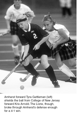Shots: Col. of New Jersey 19, Amherst 6; Goalkeeper saves: Col. of New Jersey (Jackie Conroy) 2, Amherst (Beth Sensing) 12. Penalty Corners: Col. of New Jersey 13, Amherst 6.