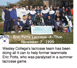 When Eric Potts was a member of the Wesley College lacrosse team, he was known for his hustle, his great attitude and his love of lacrosse.