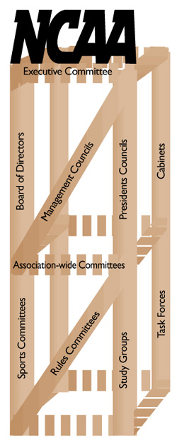 The overall administrative structure includes an Executive Committee that is composed of CEOs and oversees Association-wide issues. The Executive Committee, as well as the Board of Directors and Divisions II and II Presidents Councils, also have the authority to establish task forces or study groups to focus on specific issues for a stated period of time.