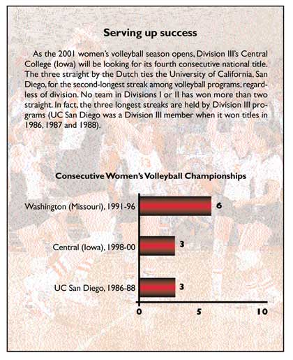 The survey also found that, overall, women tend to be coaching women's basketball teams at the Division I level and that a drop in the number of female coaches -- measured between 1994 and 1997 -- seems to be reversing. For 2000-01, 72 percent of the coaches of women's teams were female, up from 71 percent the year before and 67 percent in 1997. (In 1994-95, 74 percent of head women's basketball coaches were female.)
