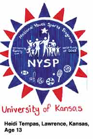 Each year, the National Youth Sports Program conducts a T-shirt design competition in which participants compete to have their designs featured as the official NYSP logo for the following summer. Every NYSP camp was encouraged to hold a T-shirt design contest as a part of the educational component. Designs were judged on artistic quality, originality, creativity and the interpretation of the 2002 "Family Day Celebration" theme. The contest allows participants to creatively express their talents, and create a sense of pride and accomplishment at the NYSP camps, and to increase visibility and public awareness of NYSP. This year's winner was 13-year-old Heidi Tenpas of Lawrence, Kansas. Tenpas will receive an award for achievement at the NYSP National Workshop January 19-22 in Orlando, Florida. In addition, the 12 runner-ups also receive special awards, and their designs are featured in the 2003 NYSP calendar