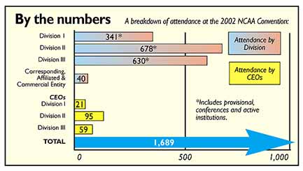 One of the reasons the Association moved its national office to Indianapolis was so that the NCAA headquarters would be more centrally located within its mem bership. Indianapolis also offered plentiful, convenient and efficient meeting facilities. Both factors were put to good use as almost 1,700 delegates converged on Indianapolis to conduct what NCAA President Cedric W. Dempsey called "one of the best NCAA Conventions ever."