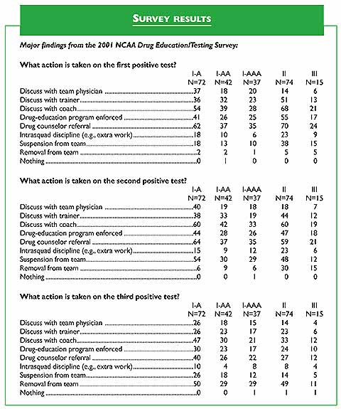 Testing Survey results can be helpful in institutional programming, they should be used together with results from the 2001 NCAA Study of Substance Use Habits of College Student-Athletes. Together, those two studies present a comprehensive picture of the drug-use attitudes and habits of student-athletes across sports and divisions, as well as institutional programs and policies that are in place to deal with these issues and problems.