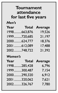 The pod approach to first- and second-round contests was implemented this year to place more teams closer to home in first- and second-round games. The action came after the committee received numerous comments from student-athletes' parents and other fans who were unhappy with expenses they encountered to see their teams play during the 2001 championship. With the pod system in place this year, first- and second-round crowds increased by 143,025, a jump of 45 percent over 2001.