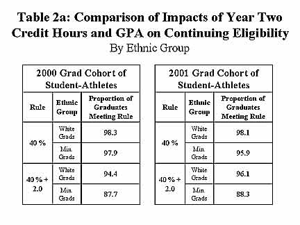 Indeed, for the 2000 and 2001 graduating cohorts, about 88 percent of the ethnic minorities who graduated met the proposed year-two enhancements (compared to about 95 percent for white graduates).
