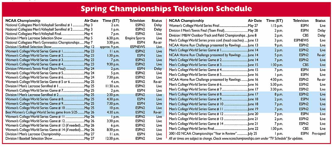 Spring sports championships previews -- Spring championships Television Schedule