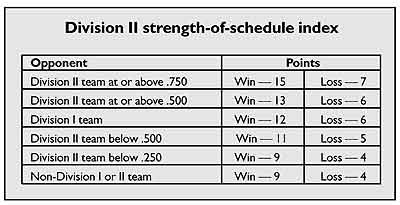 Division II in-region won-lost record and strength of schedule;