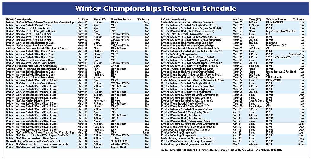 Winter sports championships previews -- Fall Championships Television Schedule