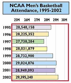 A record number of fans watched NCAA men's basketball games during the 2001-02 season, highlighted by Division I attendance topping the 24 million mark for the third straight season.