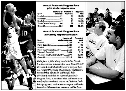 Data collected from almost 90 percent of Division I institutions on more than 22,000 student-athletes over a six-year period will help the group composed largely of Division I Management Council members determine a metric that defines academic-progress standards and serve as the foundation upon which rewards and penalties will be based.