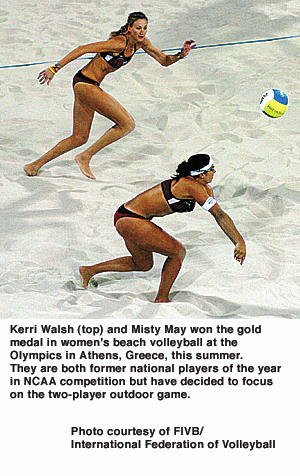 "Beach volleyball has a little more glitz and glamour,''said Kathy Gregory, the coach at the University of California, Santa Barbara. "It's on the beach in bikinis. So the publicity was better. It was probably a little more exciting to watch. They (May and Walsh) were ranked No. 1 in the world, and they were going against the top Brazilian teams. They are very charismatic and competitive. Who wouldn't want to watch that?