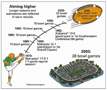 The Big 12 proposal cites a survey conducted by a Division I-A conference after the 2002 football season revealing that most of that league's football student-athlete respondents actually preferred a 12-game season. "An annual 12-game regular season likely is contingent on postseason opportunities remaining at a maximum of two (including the conference championship, if applicable, and one bowl game) so that a team could participate only in a total of 14 games in any one season," the proposal states.
