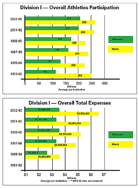The latest NCAA Gender-Equity Report, compiled from information provided by member institutions, shows little increase in participation in women's athletics compared to their male counterparts over figures released in the 2001-02 study. The study, done bi-annually since 1991-92, is now conducted annually.