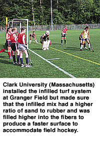 One of those schools is Clark University (Massachusetts), which made the switch to an infilled surface about three years ago. Among the sports affected by the transition was field hockey.