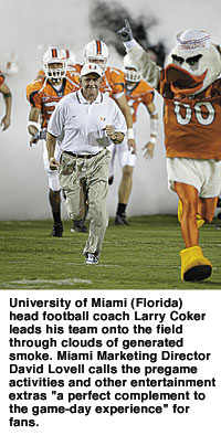 Most marketing people in intercollegiate athletics would agree that the extras at a football or basketball game are intended only to draw people to return to the stadium or arena for another game, not to become the game.