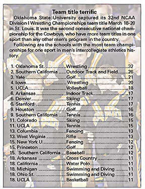 The women's basketball and women's ice hockey squads, however, came up short in their title bids. In women's basketball, the Pointers lost their semifinal game to Bowdoin, 64-59. The women's ice hockey team advanced to the final after surviving two double-overtime games, first against Wisconsin-Superior for the conference championship and second against Gustavus Adolphus in the national semifinals. The Pointers lost the championship game to Middlebury, 2-1 (see championship story, page 23).