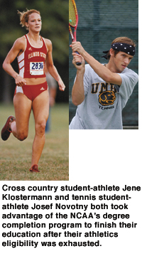 The degree-completion grants are the result of an NCAA-funded program that helps students who have exhausted their athletics eligibility but still need 30 credit hours or less to complete their degrees. The award pays for tuition, books, and room and board for full-time students who are approved by a committee. Often, the award means a student-athlete who might otherwise be forced to abandon a dream of an education can complete their studies.