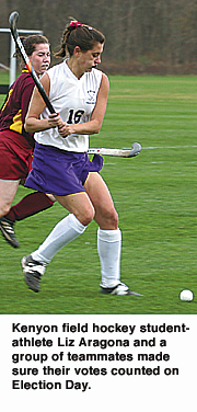 About half an hour before practice was to begin November 2, the day the nation flocked to the polls to cast political ballots, Kenyon coach Robin Cash received a frantic phone call from a group of players who were waiting in one of Ohio's many long lines to vote.