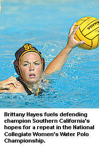 Championship notes: UCLA has outscored its opponents, 75-15, in the first quarter through its March games. The Bruins, 22-0 through March, have had their best start since the 1996 championship season ... Hawaii rode an eight-game winning streak into April, including wins over ranked California and Long Beach State. The team's fourth-place ranking is its best in four years ... Last year's Southern California team was the first to go undefeated in NCAA women's water polo history. Sophomore Brittany Hayes leads the Women of Troy with 31 goals this season ... Stanford has built on its 2004 third-place season with the return of 11 players. Nancy El-Sakkary and Katie Hansen lead the Cardinal in scoring.