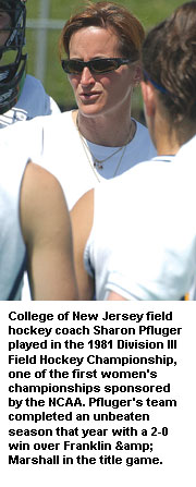 Sharon Pfluger is in the midst of her 20th season in charge of the field hockey program at The College of New Jersey. With well over 350 victories, seven NCAA Division III national championships and five undefeated seasons to her credit, Pfluger has seen a lot of field hockey.