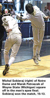 Men's epee: Michal Sobierij, Notre Dame def. Marek Petraszek, Wayne St. (Mich.), 15-13.