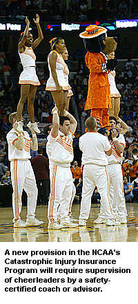 Those initiatives will lay the groundwork for next year's policy change (effective August 1, 2006), which will require cheerleaders to be under the direct supervision of a coach or advisor who has completed safety-certification training at the time of an accident, for coverage to apply.