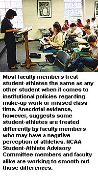 Student-athletes acknowledge there is a disconnect between themselves and a few faculty members on just about every campus, and they are quick to point out that student-athletes must disprove the stereotypes that some professors hold.